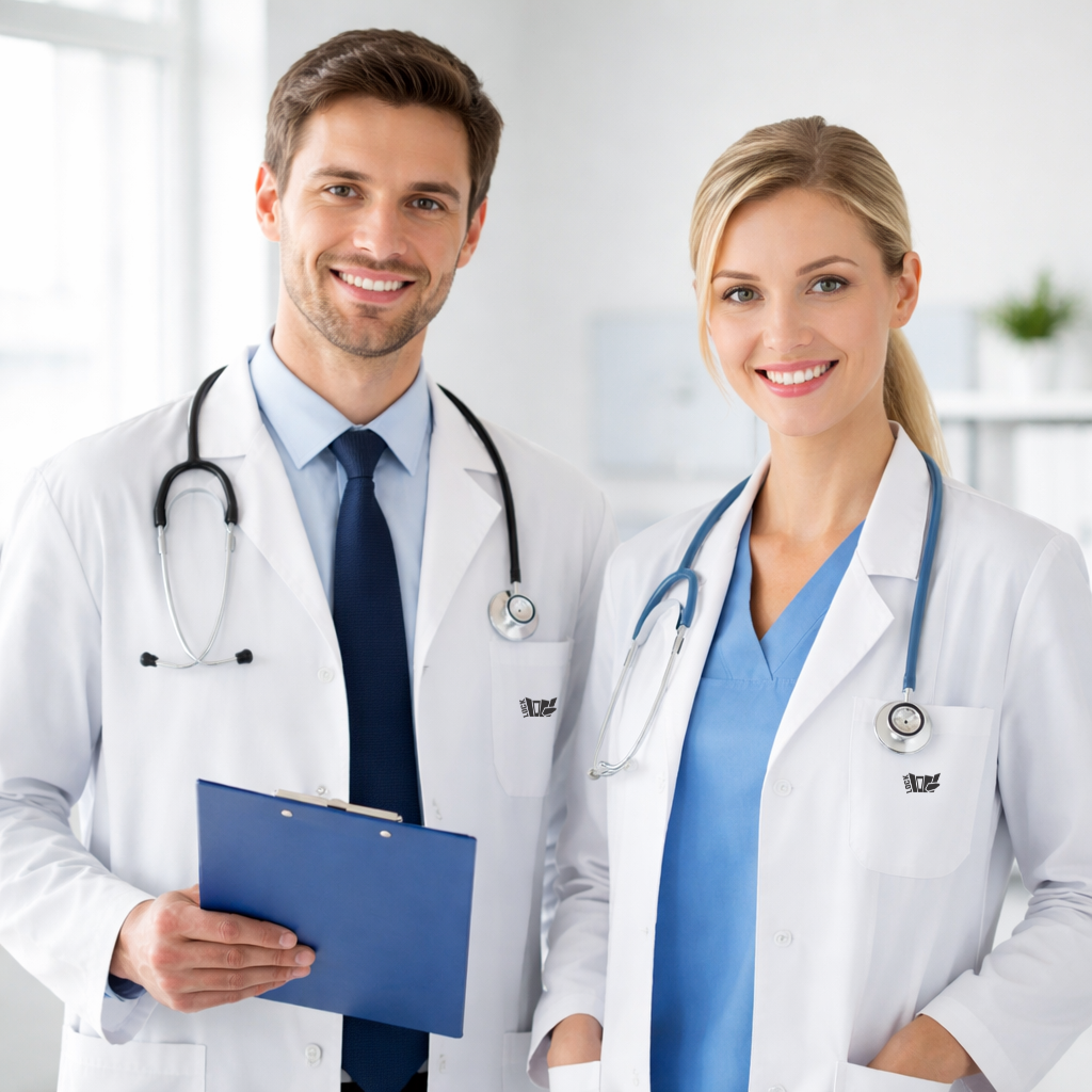 Scrubs, lab coats & medical uniforms customized for healthcare teams.